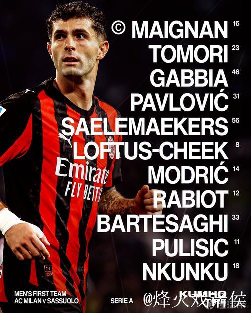 意甲新赛季的一场焦点之战即将在圣西罗上演,AC米兰坐镇主场迎战来访的萨索洛。这一次,红黑军团在攻击线上的排兵布阵格外引人注目:普利希奇联手恩昆库组成极具冲击力的前场组合,而中场则是经验与硬度兼具的豪华